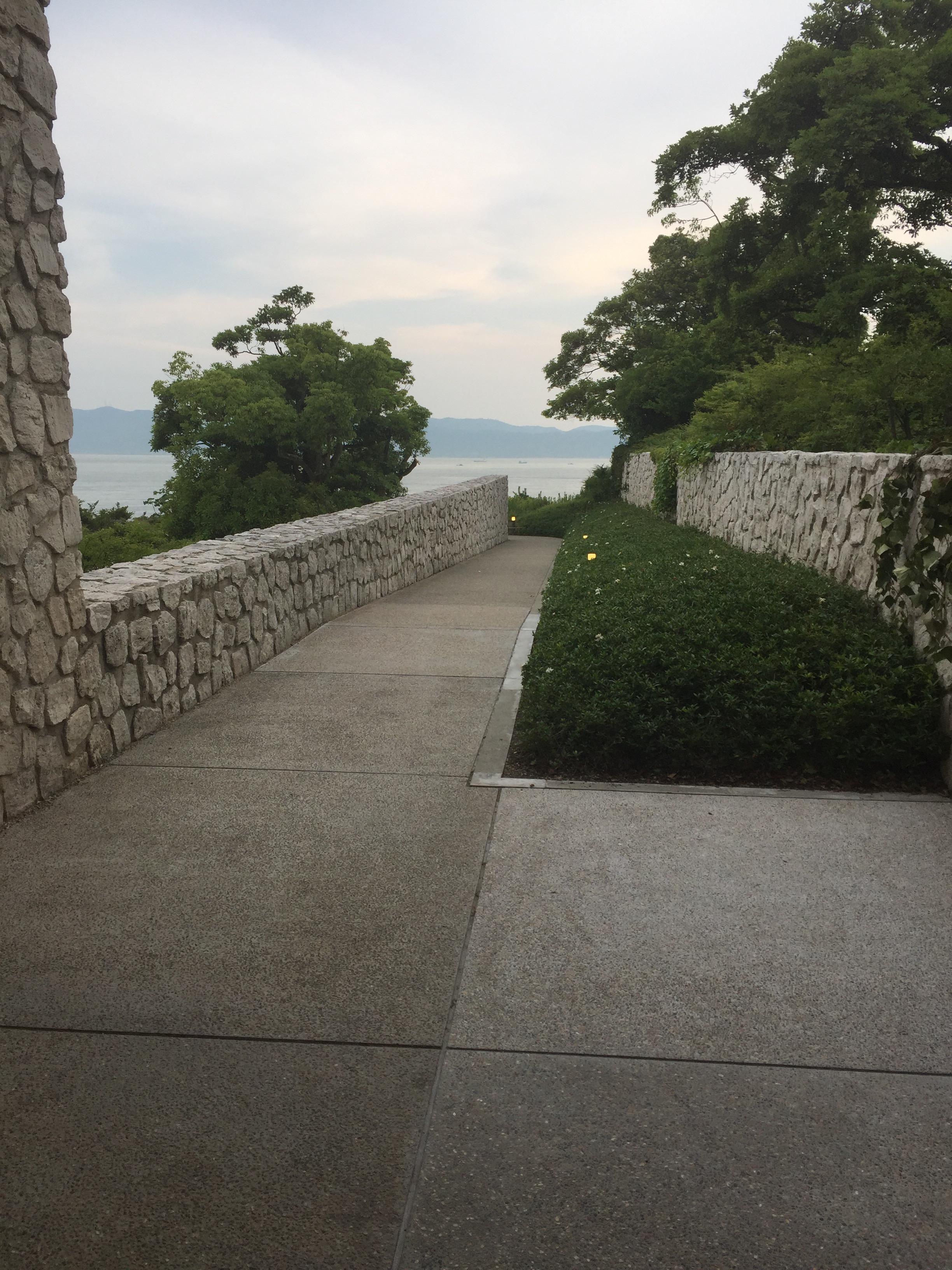 Lower down the hill is the Benesse Art Museum. Here is the view from the from entrance.