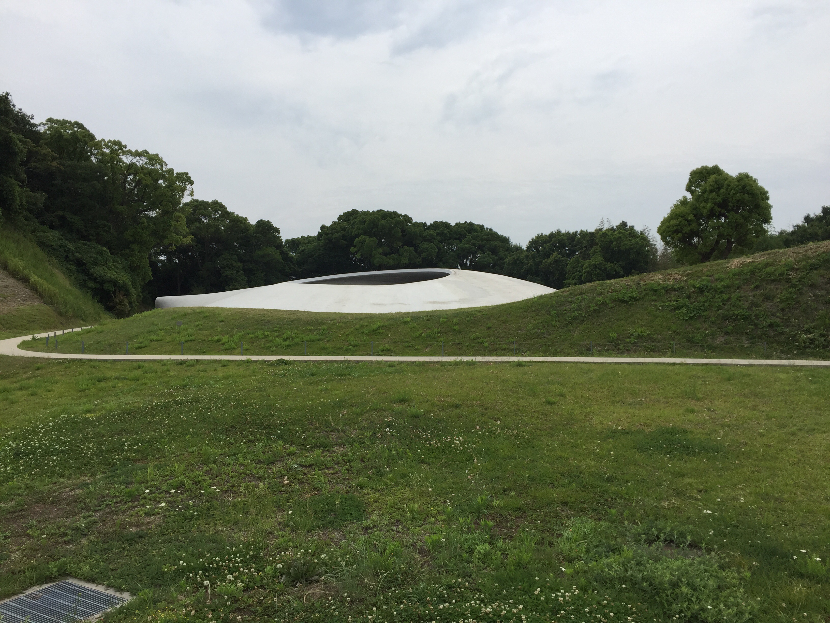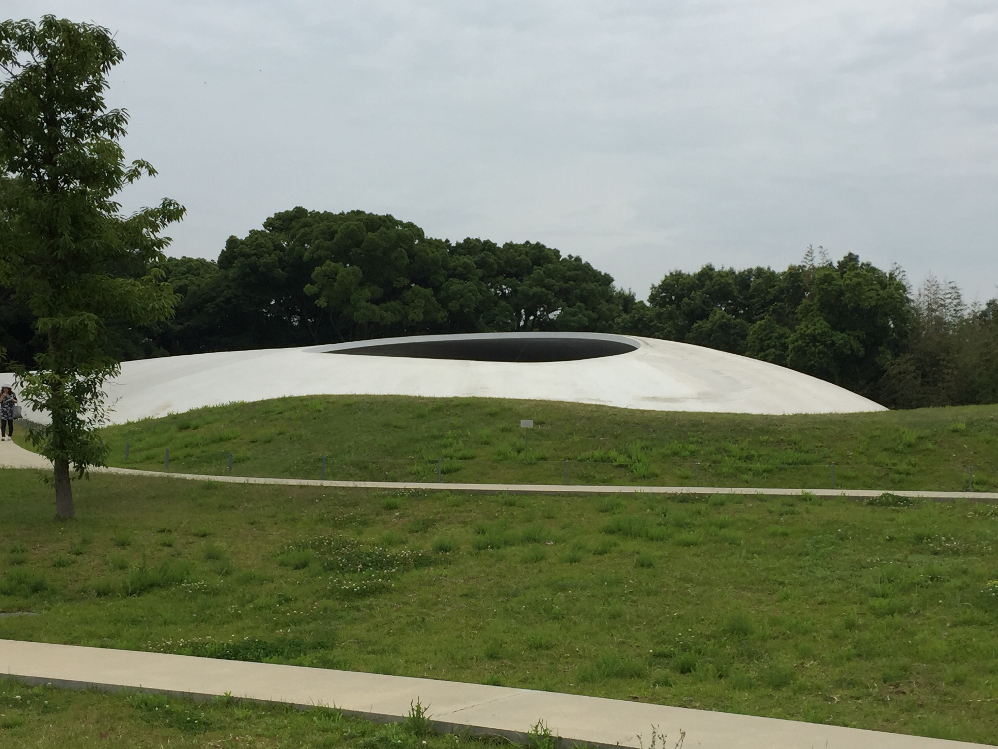 On my last day in the islands, I took a ferry to Teshima Island, the home of the Teshima Art Musuem. The museum was designed by Ryue Nishizawa and the interior piece, there’s one and only one, was designed by Rei Naito who did the Art House Project called Kinza which I had experienced by myself a few days before. The Museum is a white concrete shell like some sort of oblongish saucer foot ball field size with two oblong holes in the ceiling.