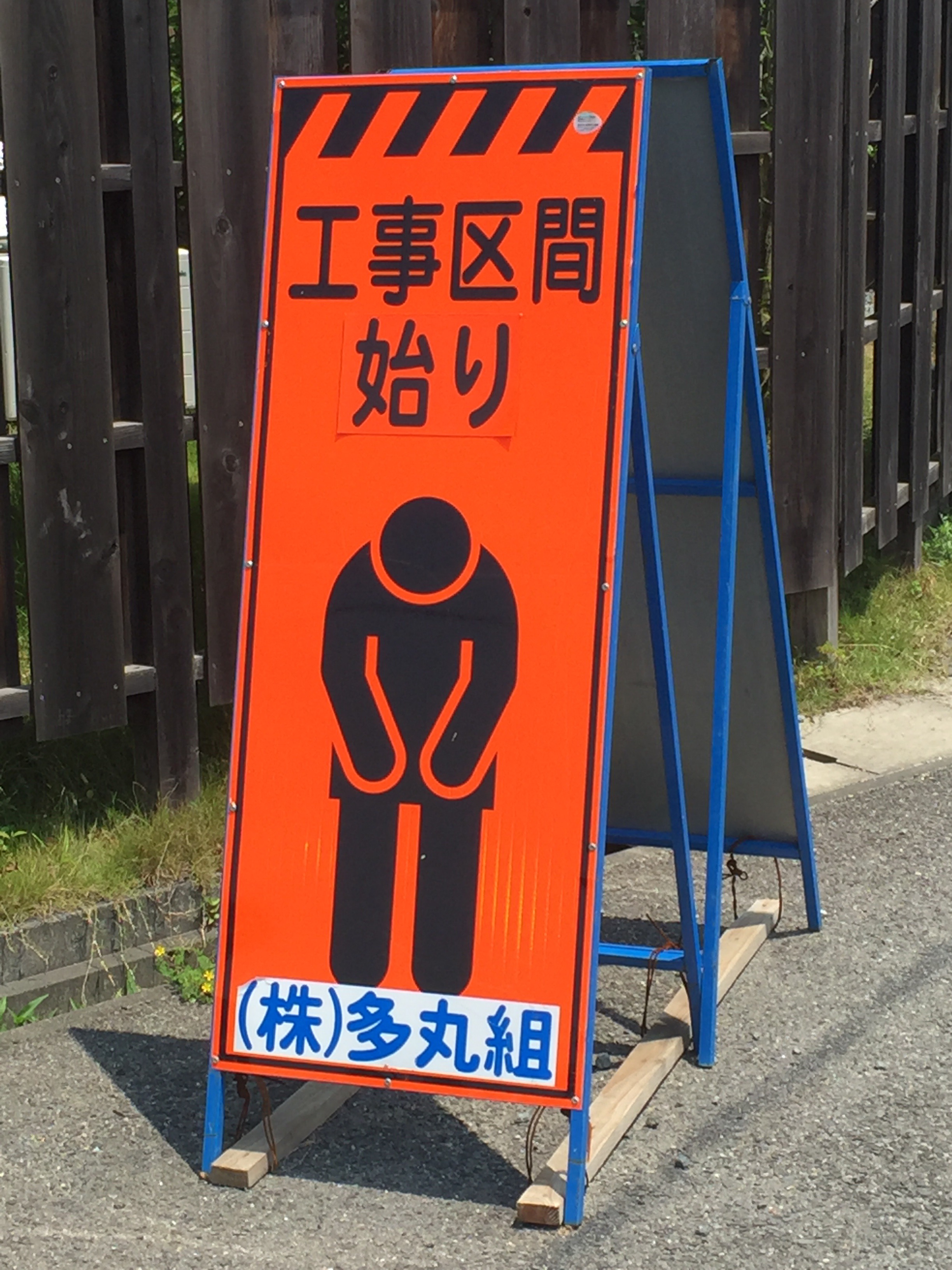 My favorite and the only one that could end this post so filled with dangers. At a road construction site, bowing in apology for the inconvenience. Our world would be a kinder place of this was used more often.